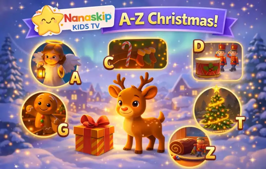 ABC Christmas song is a great way to learn the alphabet in a festive way with cheerful Christmas words and bright holiday visuals. Each letter is paired with a fun seasonal word to help kids learn letters, sounds, and early phonics while enjoying the magic of Christmas.